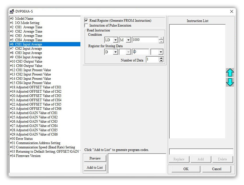 - Click the check box of #CH Input Average -> Read Register (Generate FROM Instruction)